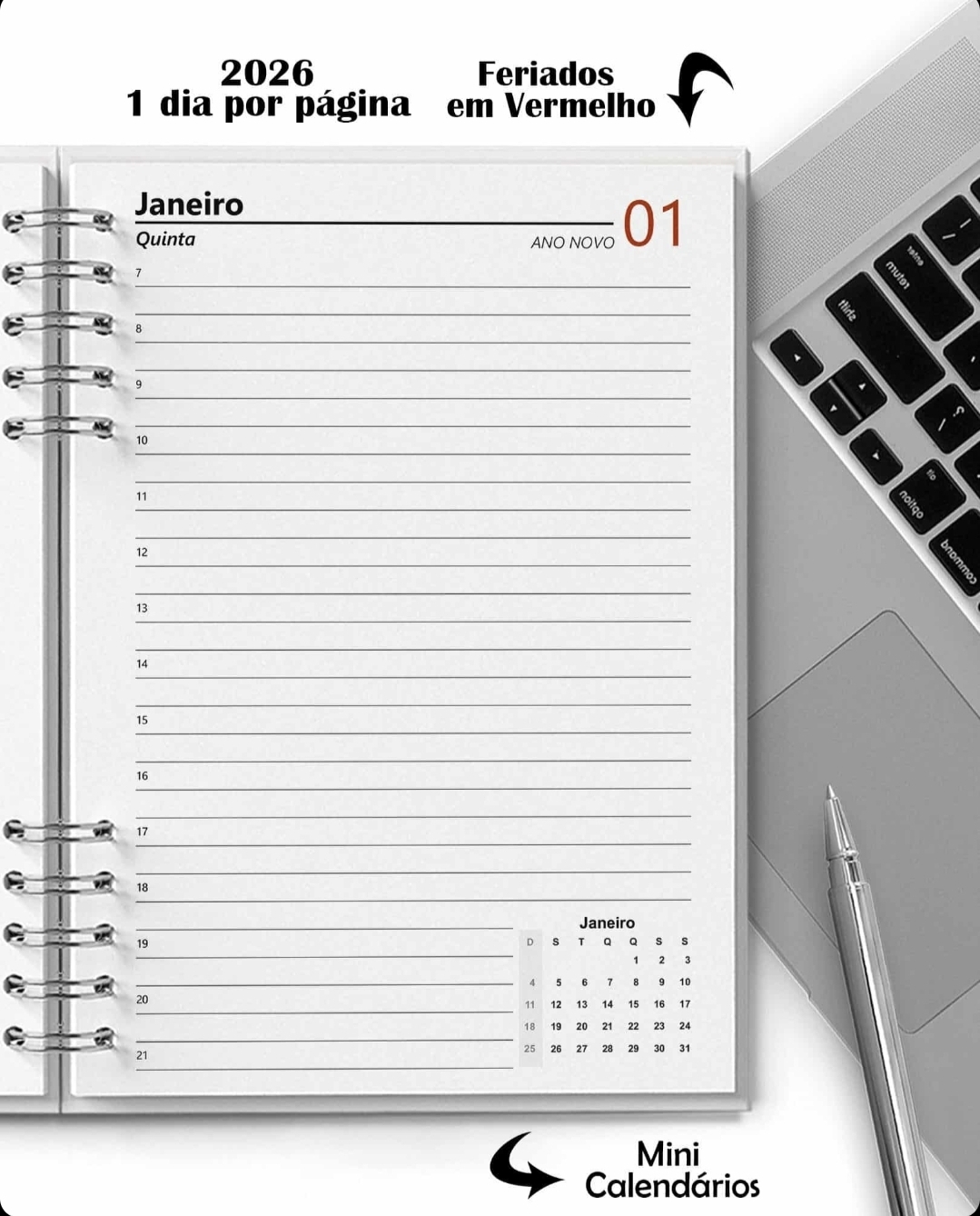 Produzida em capa dura, wire-o separado. Fechamento com elástico.